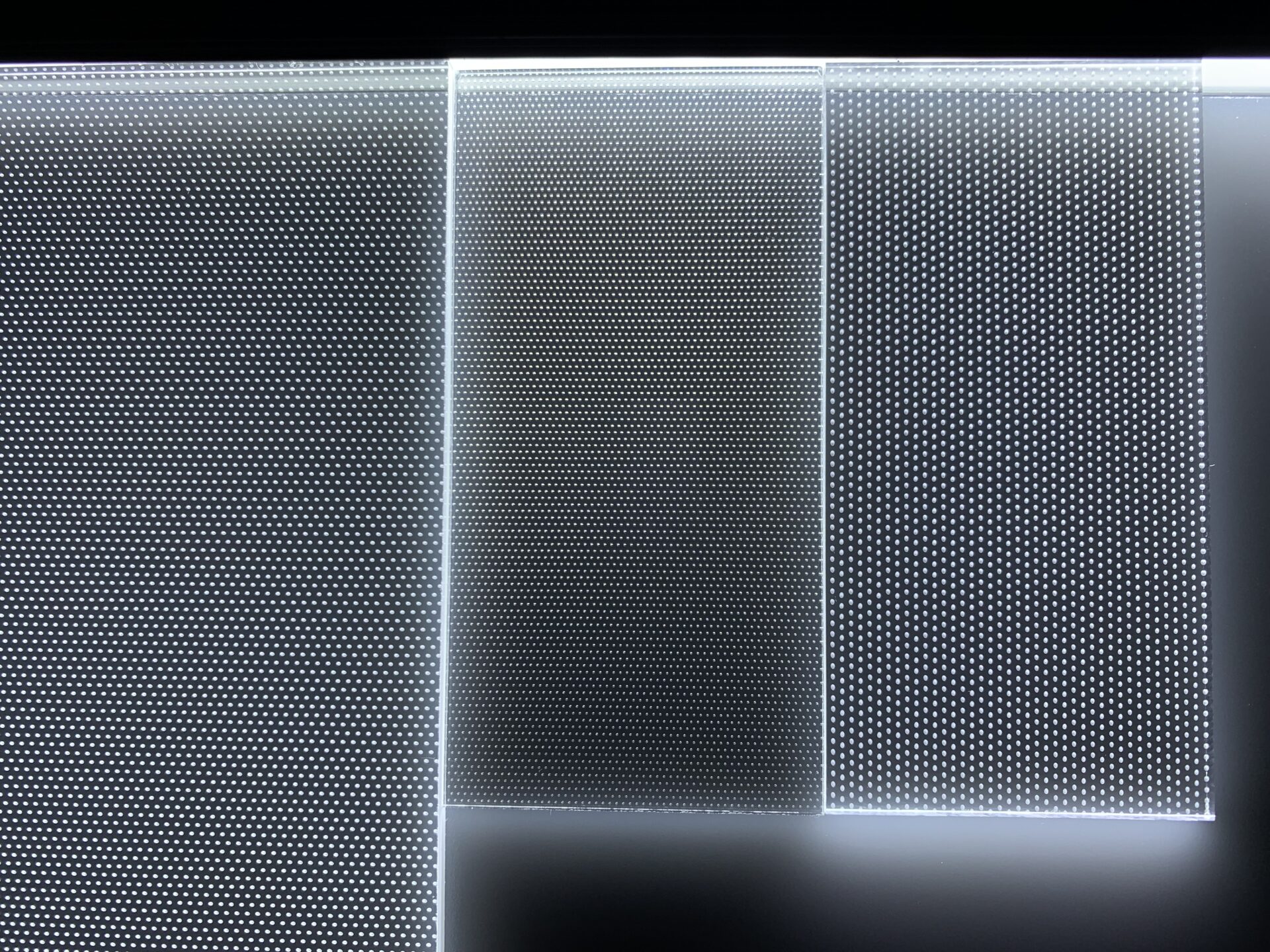 - Uniform Output: The dot density and size gradually change from the LED edge to the center of the plate to compensate for light attenuation, resulting in consistent brightness and uniform illumination.