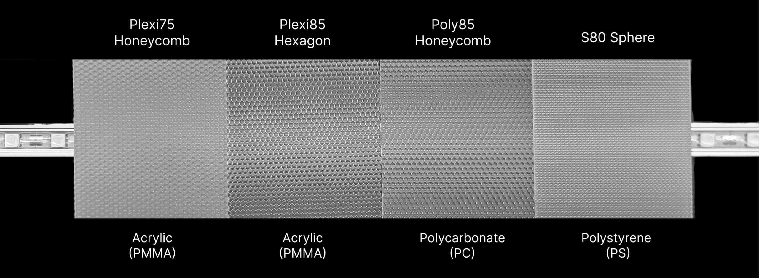 | Plexi75 Honeycomb | Acrylic (PMMA) | 1.5 & 2.0 | 75% | UL94 HB | Optical clarity, high transmission, uniform luminance. | 0.059 & 0.078 |