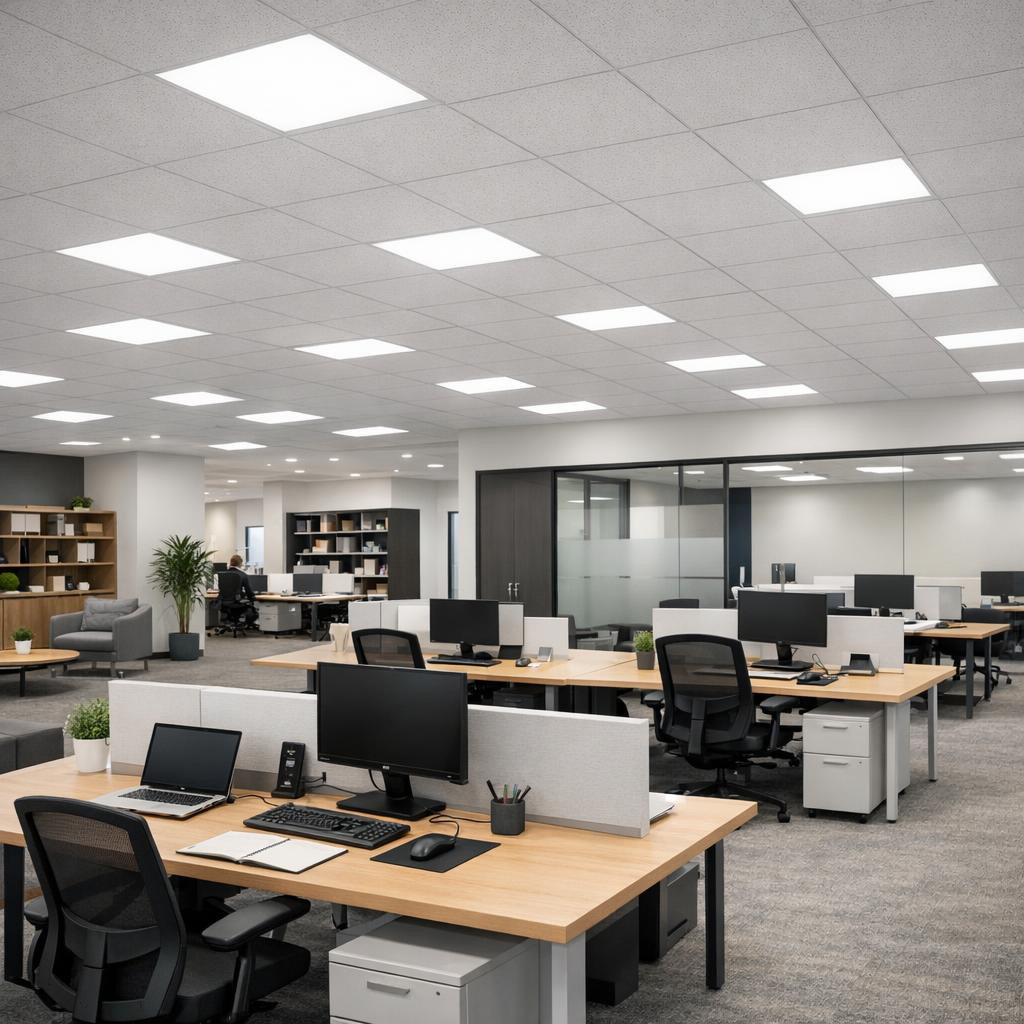 - Office lighting (open-plan offices, meeting rooms)