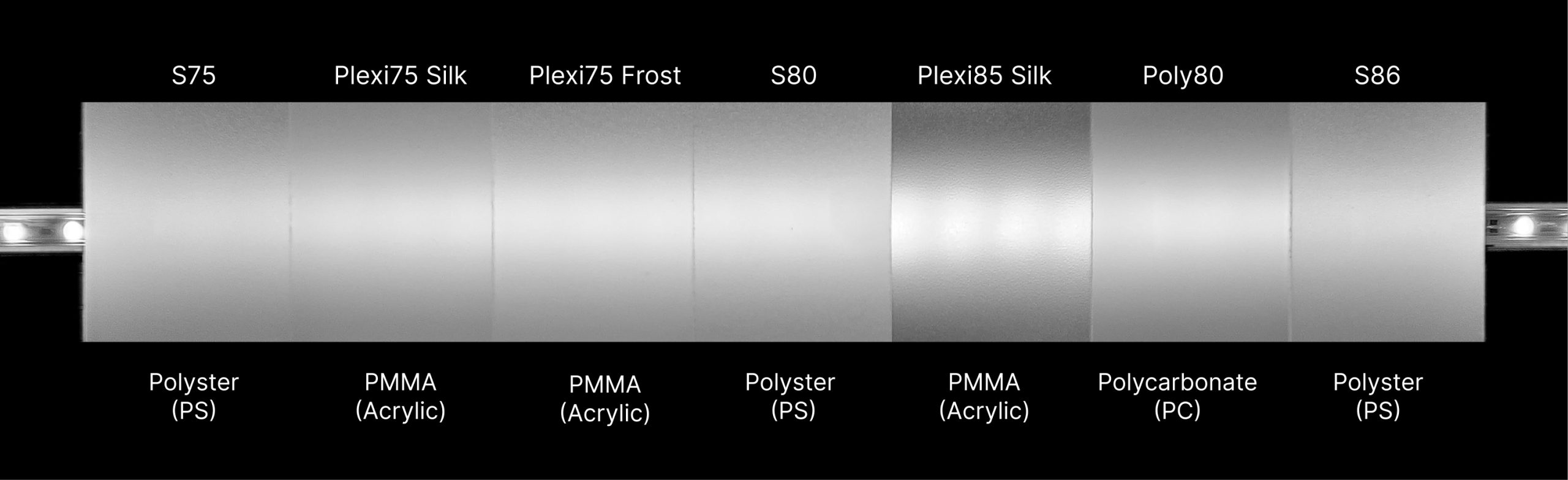 | Plexi75 Frost | PMMA (Acrylic) | 75% | UL94 HB | 1.5 & 2.0 |