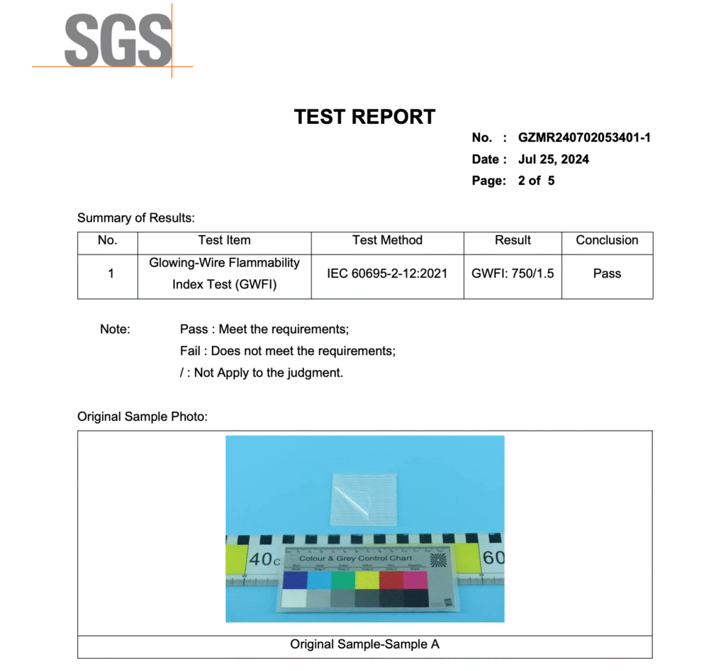 At Hexatron Technologies, we can provide SGS test reports for our diffusers to verify compliance with IEC 60695-2-12 standards.
